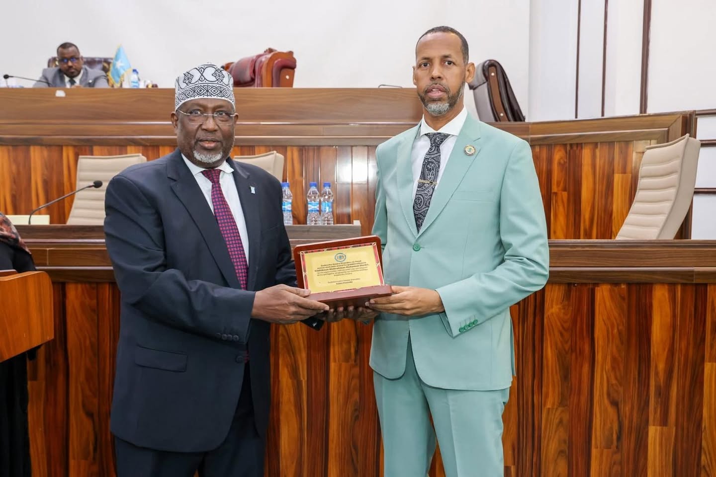 The recognition was presented in appreciation of Hon. Abdirahman’s integrity, professionalism, and unwavering dedication to fulfilling his national duties as a Member of the Federal Parliament of Somalia.